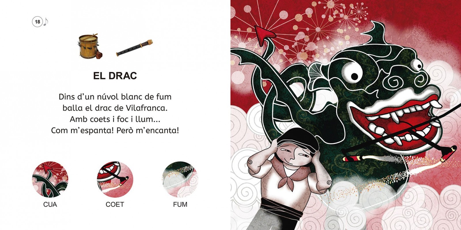 "Sona la Festa Major!” us convida a fer un recorregut per tot el seguici de la Festa Major de Vilafranca, presentant els instruments que hi intervenen i cada element de la festa amb una poesia, una il·lustració i una música.
